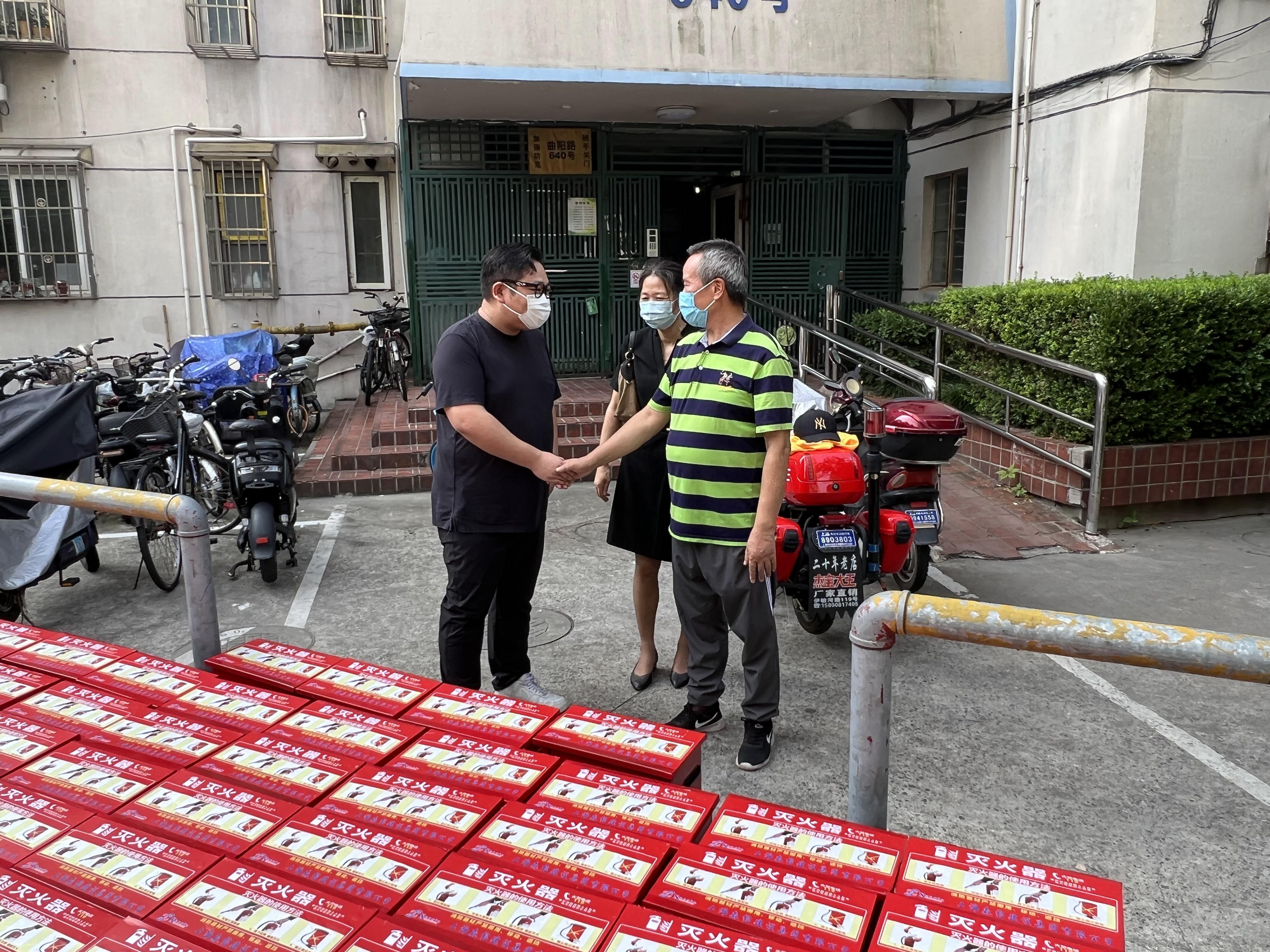 7月21日上午,虹口區(qū)人大代表、集團(tuán)總裁王銘豪向赤三居委捐贈了168具滅火器及配套器材箱,曲陽路街道黨工委副書記陳曉峰出席捐贈活動。