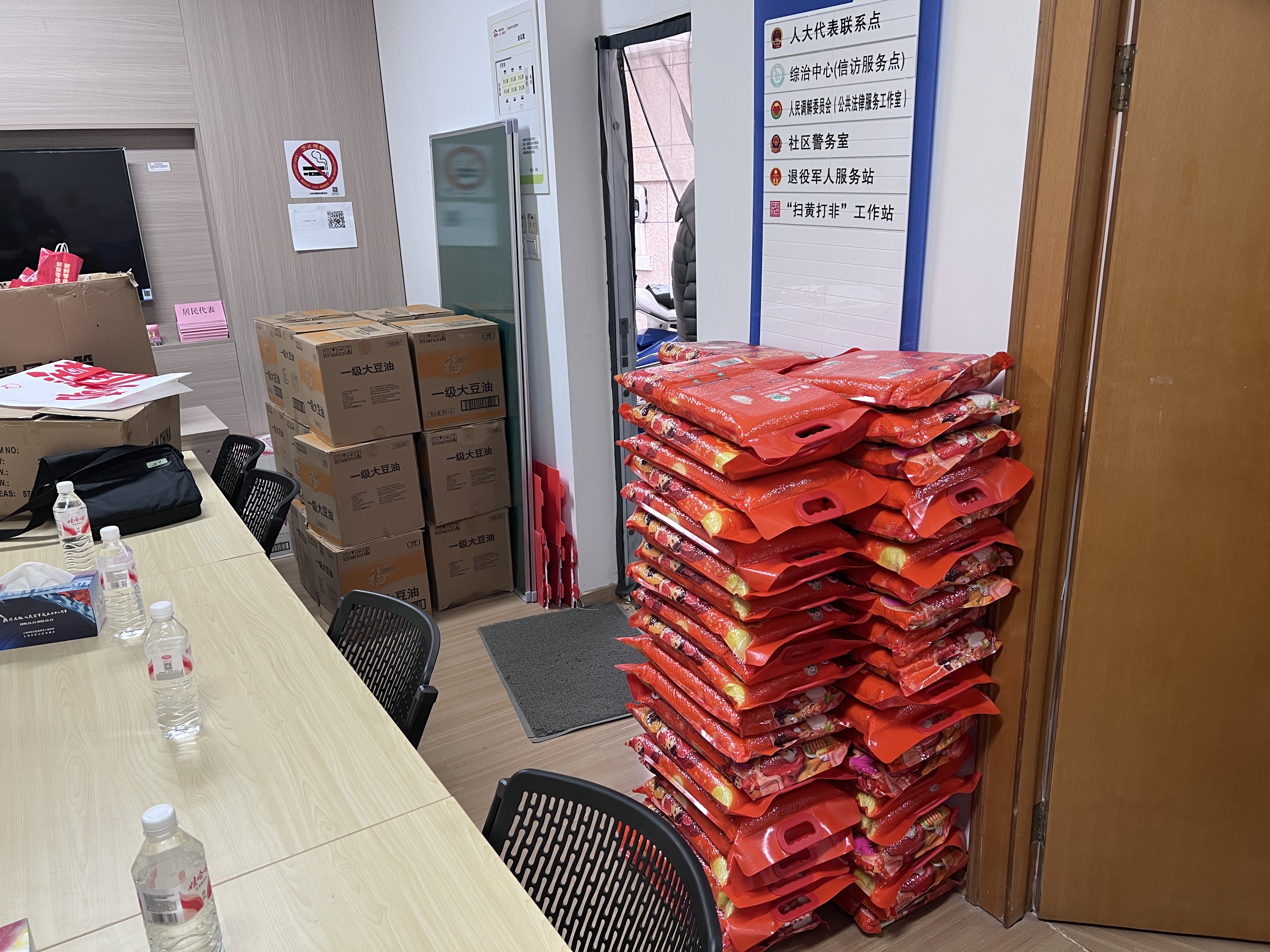 在慰問現(xiàn)場,王銘豪總裁與社區(qū)工作人員親切交流,詳細(xì)了解了困境家庭的生活狀況與實(shí)際需求,并代表集團(tuán)捐贈(zèng)了大米、食用油等過節(jié)物資,助力他們度過一個(gè)溫暖祥和的佳節(jié)。