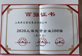 熱烈祝賀我司榮獲2020上海民營企業(yè)100強(qiáng)