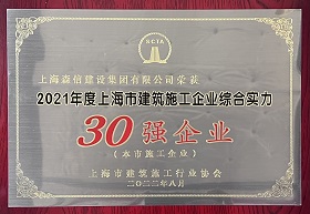 近日,第十八屆(2021年度)上海市建筑施工企業(yè)綜合實(shí)力排名揭曉,公司再次榮獲上海市本市施工企業(yè)綜合實(shí)力30強(qiáng)榮譽(yù)。...