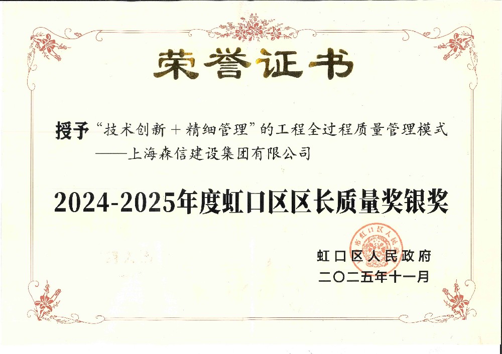 森信集團榮獲2024-2025年度虹口區(qū)區(qū)長質(zhì)量獎銀獎